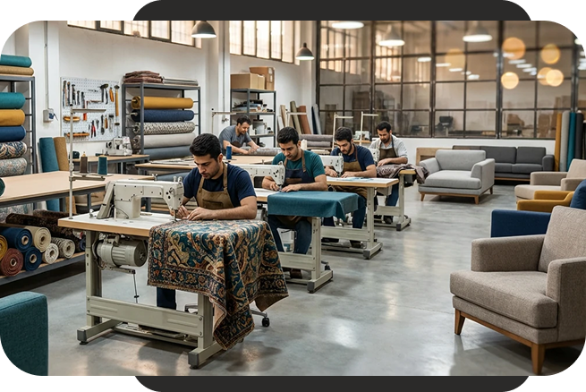 خیاط‌های ما با عشق، طرح و دوخت پارچه مبل را دقیقاً طبق اندازه‌های شما انجام می‌دهند؛ همان‌طور که شما می‌خواهید، با امضای دست‌ساز ایرانی.